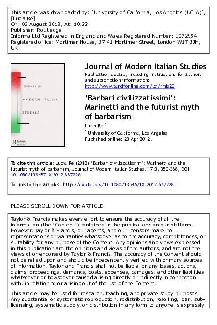 Pdf Barbari Civilizzatissimi Marinetti And The Futurist Myth Of Barbarism Lucia Re Academia Edu