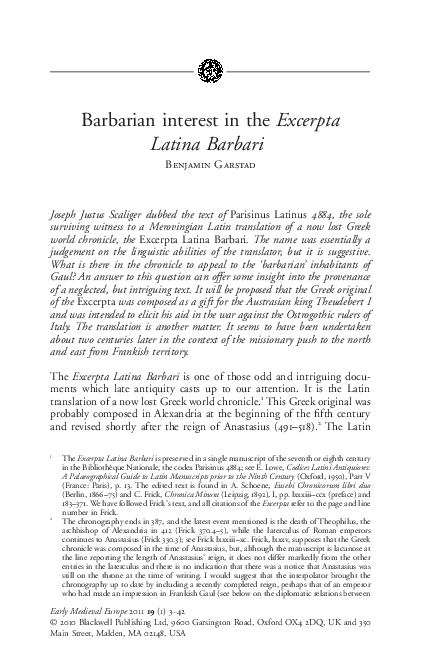 Pdf Barbarian Interest In The Excerpta Latina Barbari Early Medieval Europe 19 2011 3 42 Benjamin Garstad Academia Edu